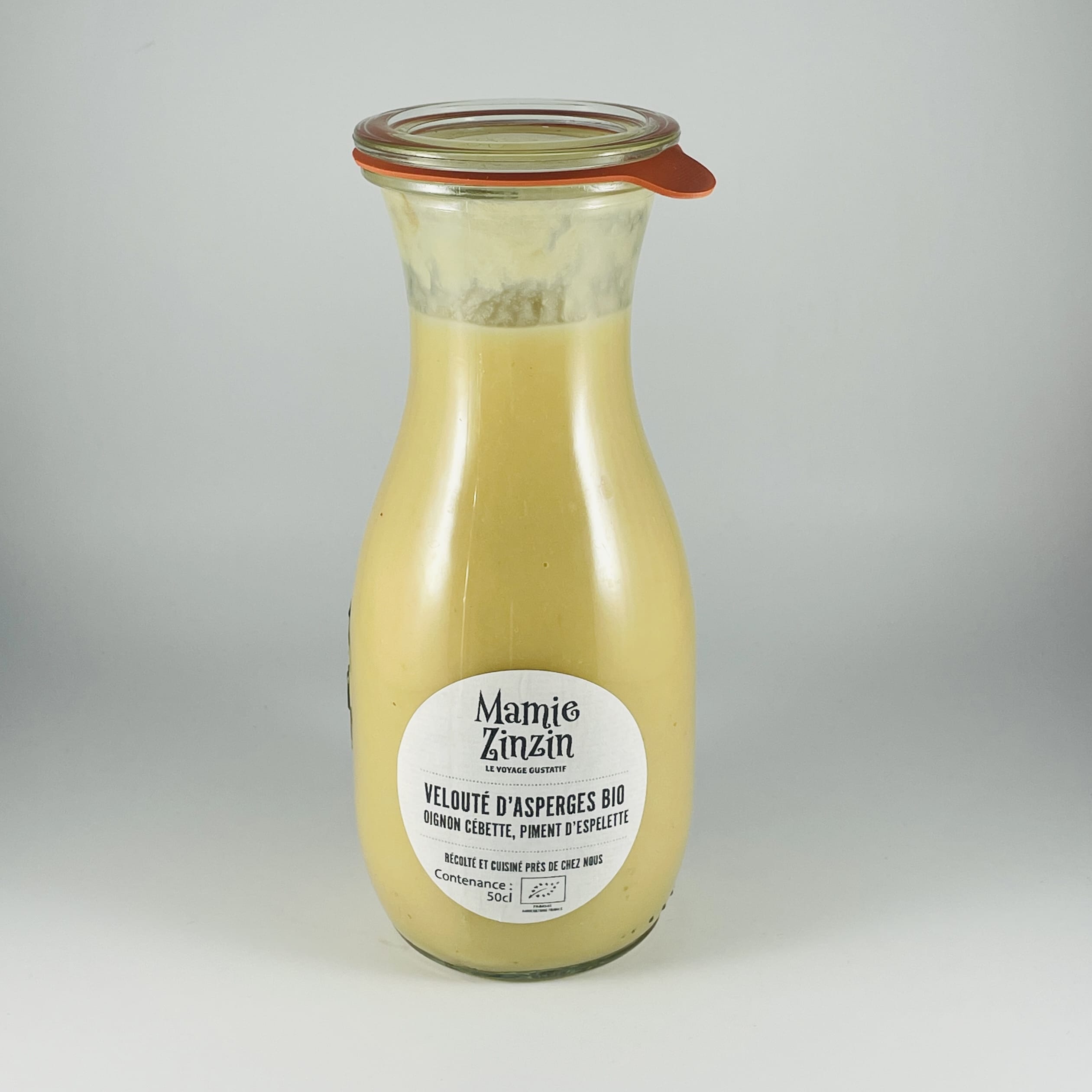 asperges*, pommes de terre*, oignons cébette*, huile d’olive*, citron*, eau, sel, piment d’Espelette*